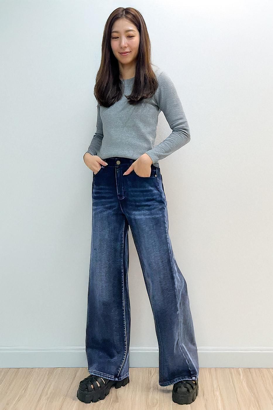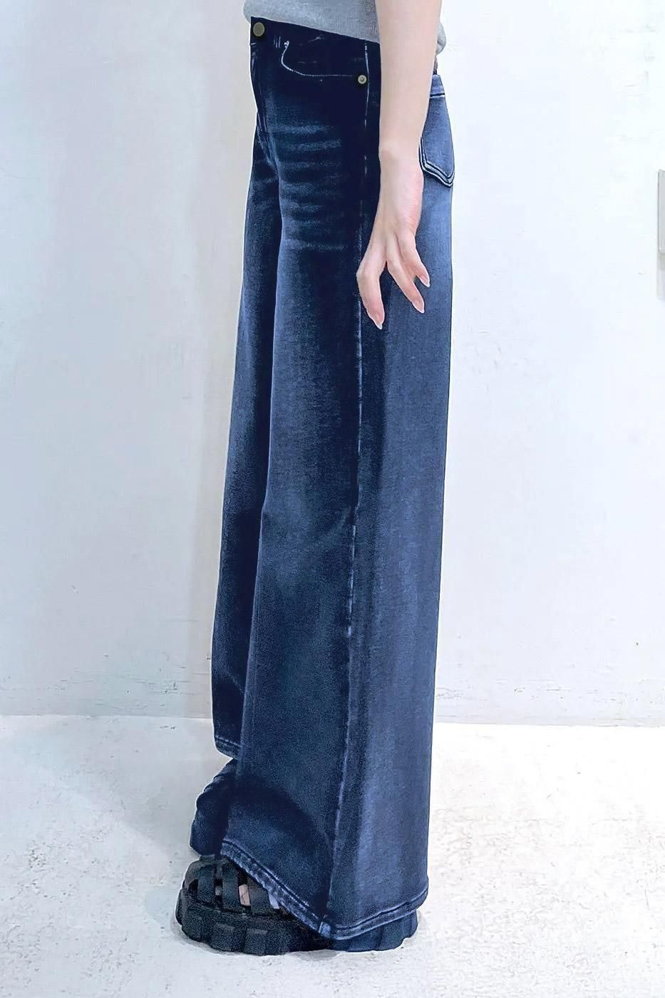 あたたかく柔らかな裏起毛素材を使用したワイドシルエットデニム。